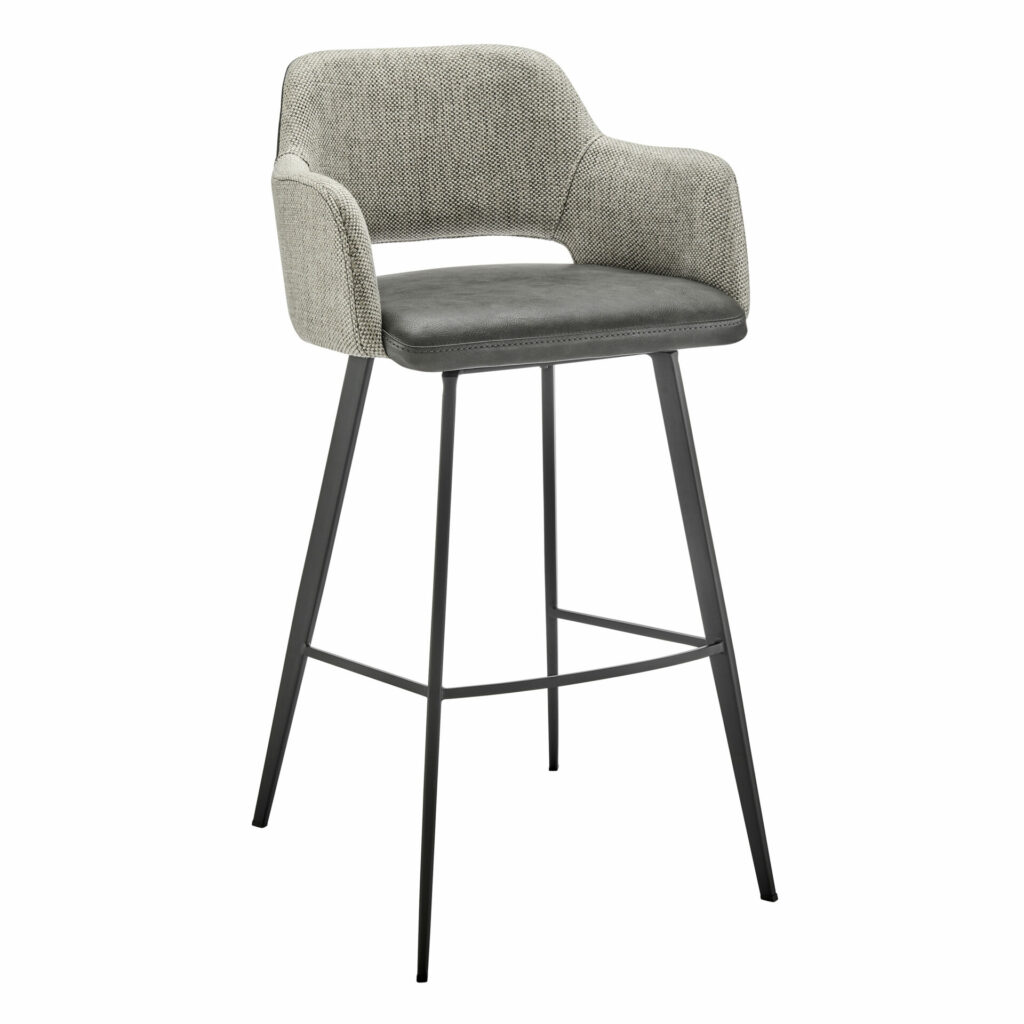 The Desi Collection rolls in with a vintage distressed soft leatherette seat paired with durable fabric back and armrests. Matte black powder coated steel legs and footrest. Avaiable in bar and counter height.