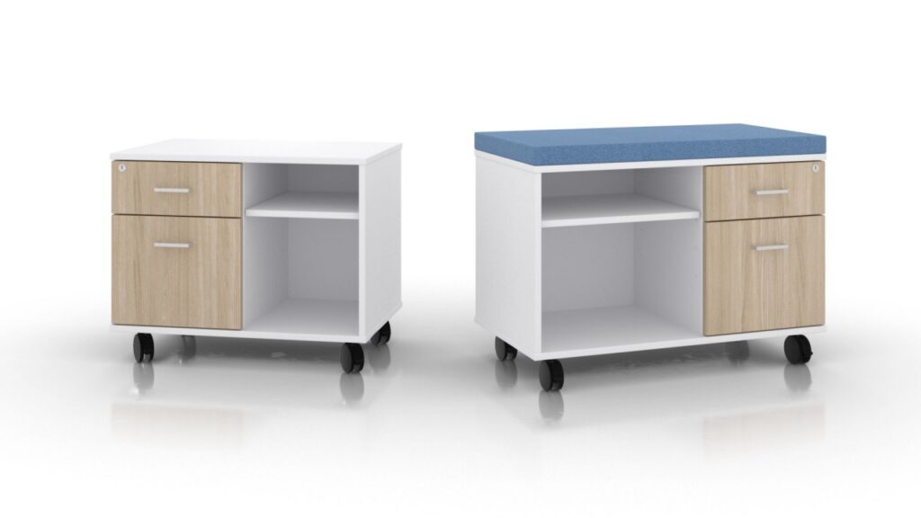Mobile Laminate Storage, a versatile solution designed to enhance organization and functionality in any office setting. Available in configurations featuring box drawer and file storage with open compartments, this unit provides ample space for files, documents, and office supplies. The durable laminate construction ensures longevity and a professional appearance that complements any workspace decor. For added versatility, the option of including a cushion top allows for comfortable seating or additional workspace. Equipped with smooth-rolling casters, this mobile storage unit offers easy maneuverability, making it convenient to move between workstations or position under desks. Whether you choose with or without the cushion top, our Mobile Laminate Storage is designed to optimize efficiency and organization in modern offices.
