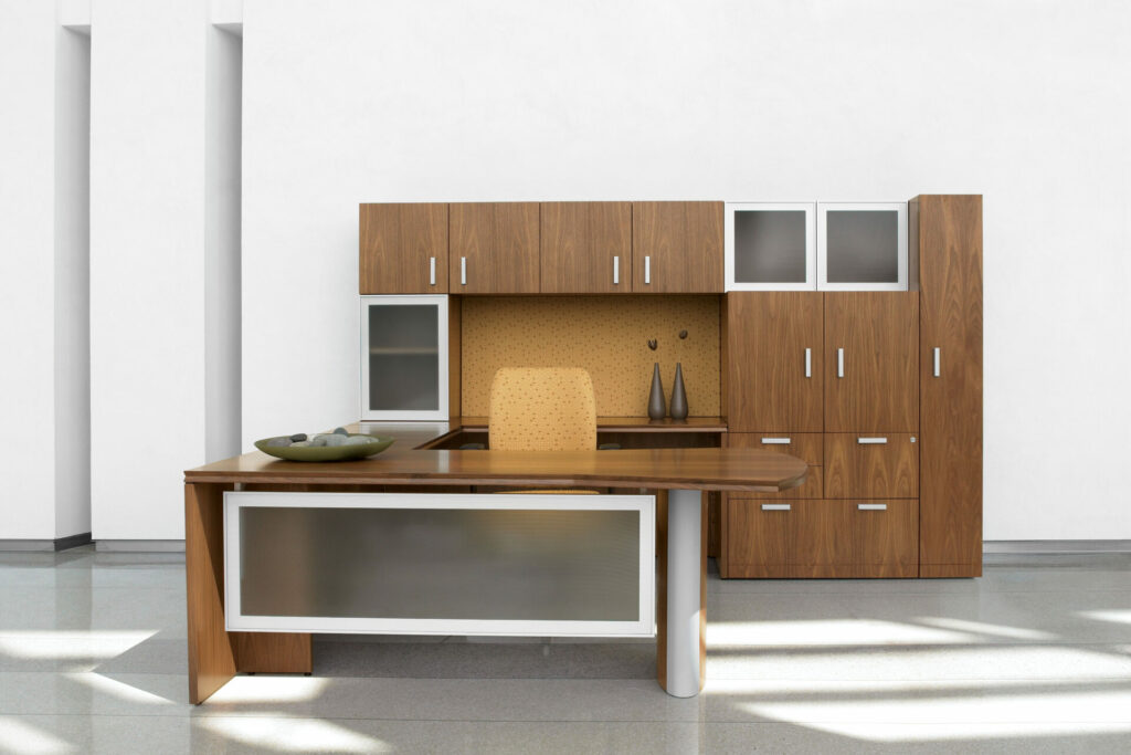 Create classic private offices or modern collaborative workspaces with naturally beautiful wood veneer desking. The Lufton wood veneer series is a contemporary collection featuring an all wood veneer construction.