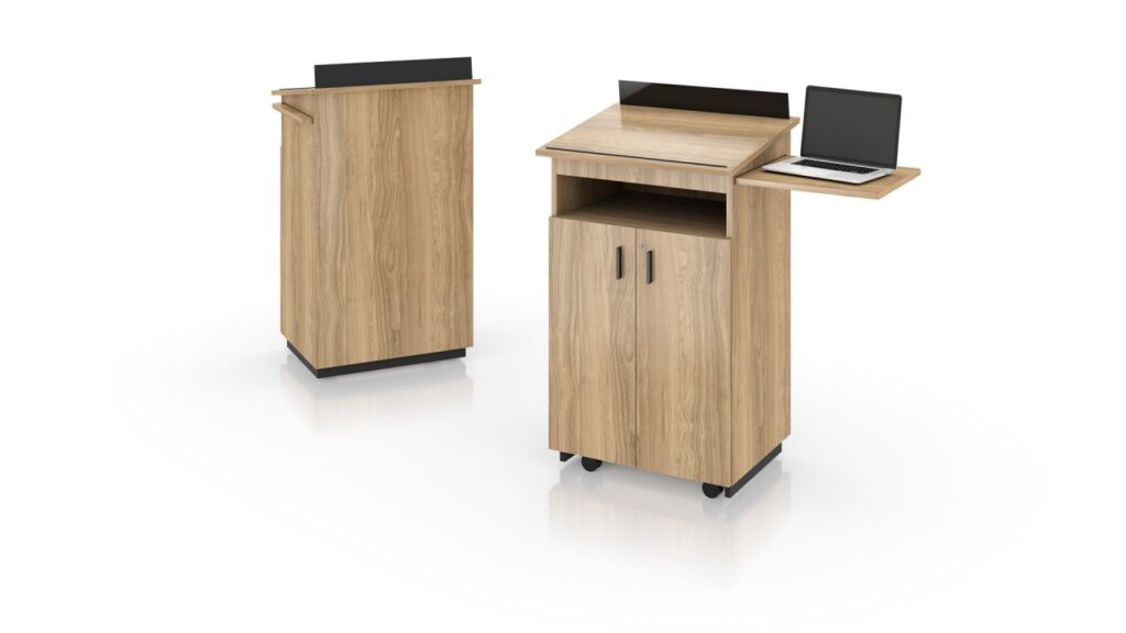 Lecterns, designed to elevate presentations with style and functionality. Crafted with precision and durability, our lecterns are ideal for conference rooms, lecture halls, and auditoriums. Available in various finishes and materials such as wood, acrylic, or metal, they offer a sleek and professional appearance. Our lecterns feature spacious reading surfaces, integrated storage compartments for multimedia equipment, and optional features like built-in microphones and connectivity ports. Whether used for speeches, lectures, or presentations, our lecterns ensure clarity and professionalism, making them essential for any speaking engagement in both corporate and educational settings.