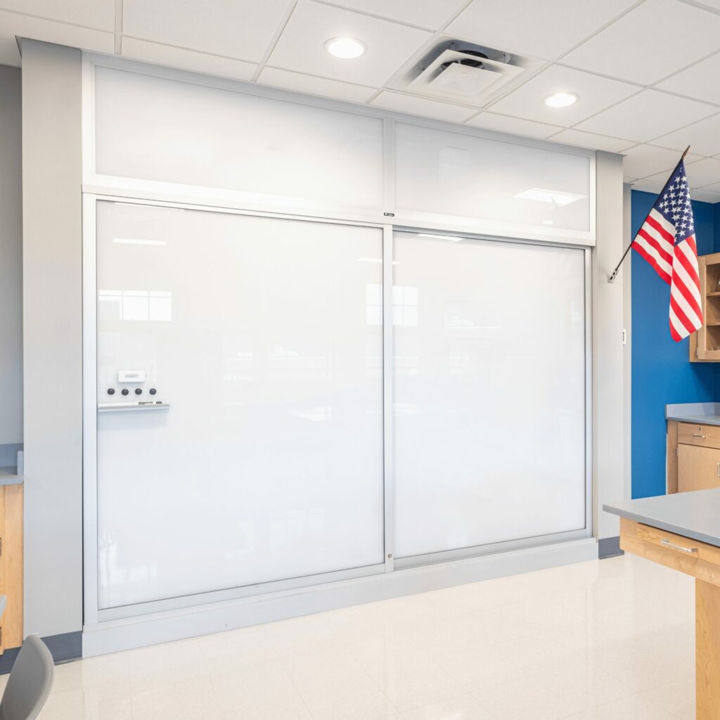 Glass Sliding Wall – Claridge custom horizontal sliding walls are ideal for tight spaces where more writable wall space is needed for brainstorming, idea sharing, quick meetings, or training sessions.