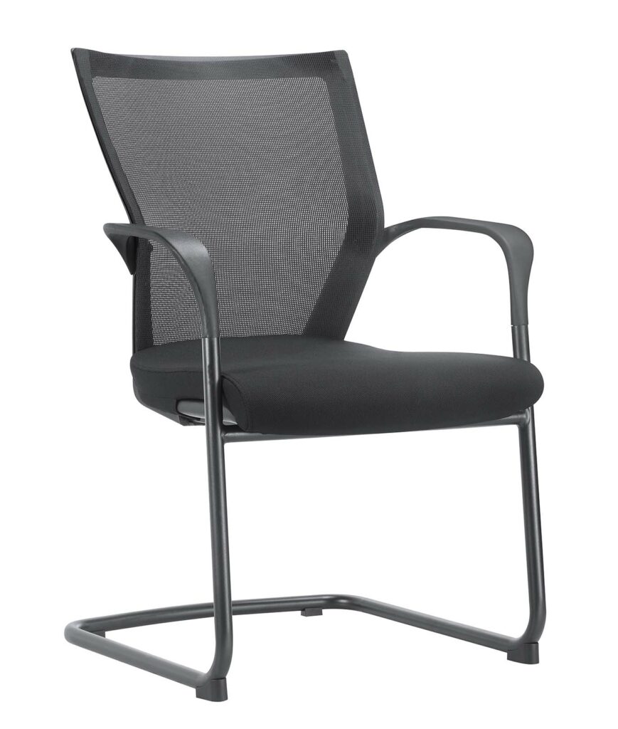 Get motivated – Simple designed arm chair with a mesh back and fabric seat, avaialble in grey or black, both with a black frame.